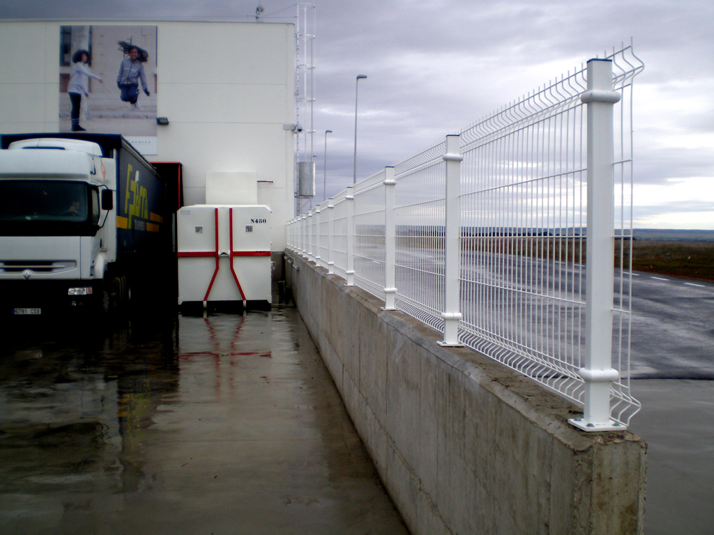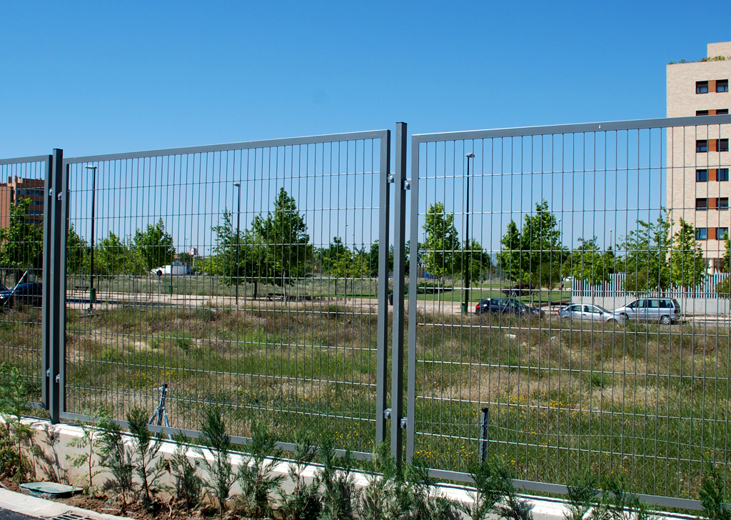 Verja tipo hércules, de malla electrosoldada construida con varilla galvanizada que posteriormente se recubre con un tratamiento de poliéster. El acabado puede ser galvanizado o lacado en poliéster.