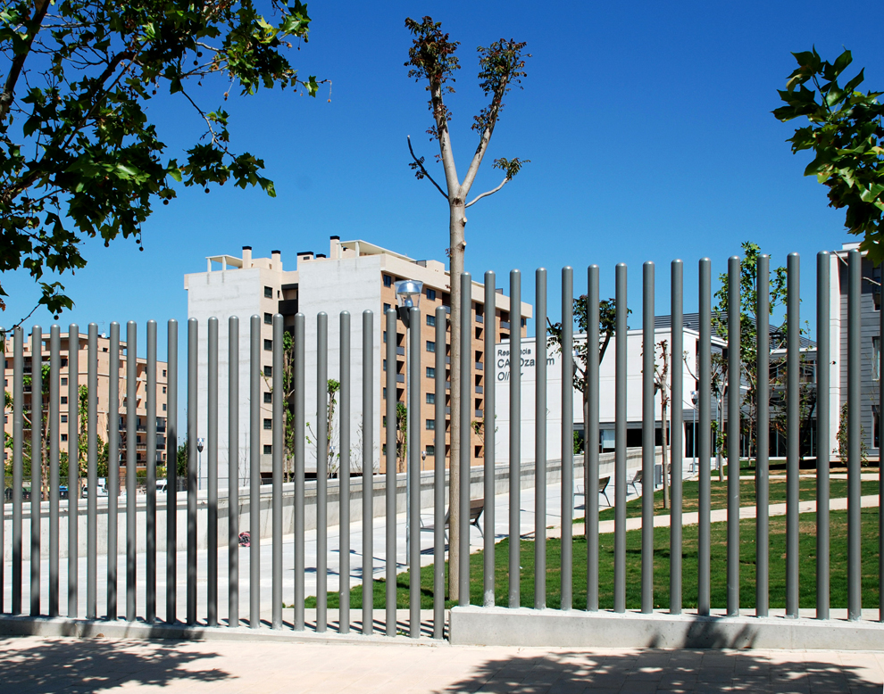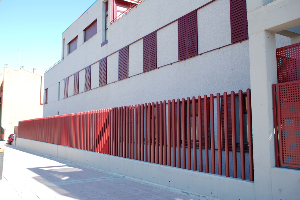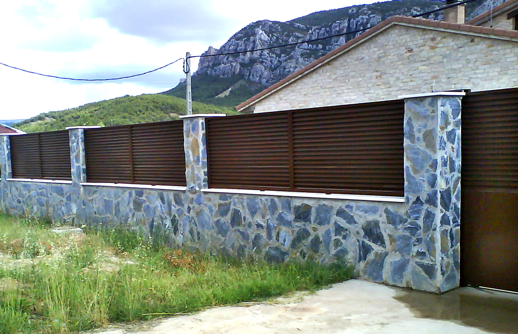Otros cerramientos: con tubo redondo de 80 y punta semiesférica, de tipo colegio, de chapa deployer, o de celosías venecianas con lamas inclinadas que forman un cerramiento traslúcido y muy estético.